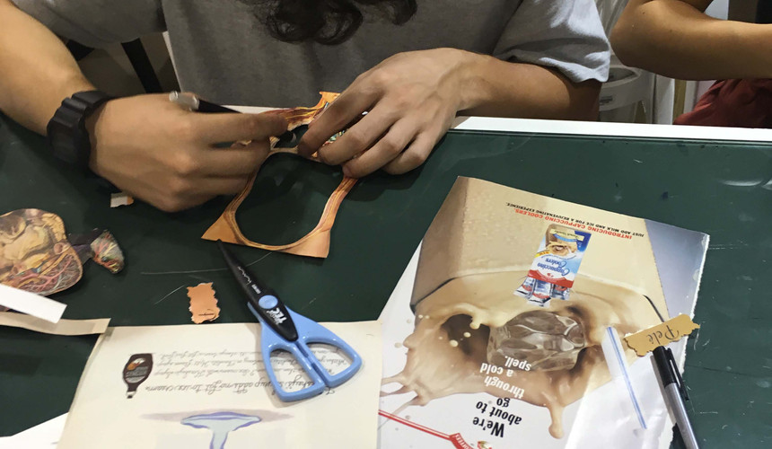 O Atelier de Colagem amplia as possibilidade gráficas para a produção de imagens através de recortes. Provocando o artista a experimentar o uso de linguagens e técnicas de colagem com suporte de outras referências e exercícios de criatividade. A colagem como processo técnico tem um procedimento artístico, mas sua incorporação nas artes, através do Cubismo, representando um ponto de inflexão do artista quando se liberta das tradicionais superfícies da pintura.